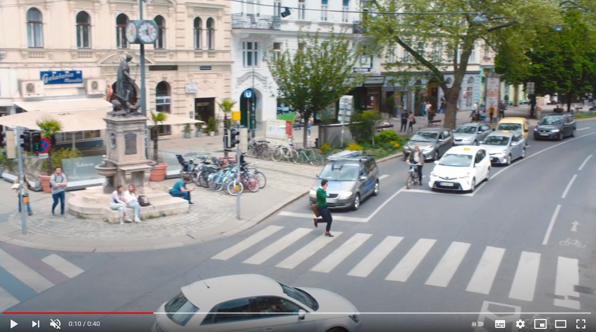 Ein großer Telekommunikationskonzern hat einen neuen Werbeclip in Auftrag gegeben. Und der sollte – zumindest an diesem Drehtag – zwei ungewöhnliche Menschen zeigen. Zum einen eine Oma, die nur vorgibt, fußmarod zu sein. Und einen frechen, sportlichen Business Man, der wie verrückt über die Straße tanz.