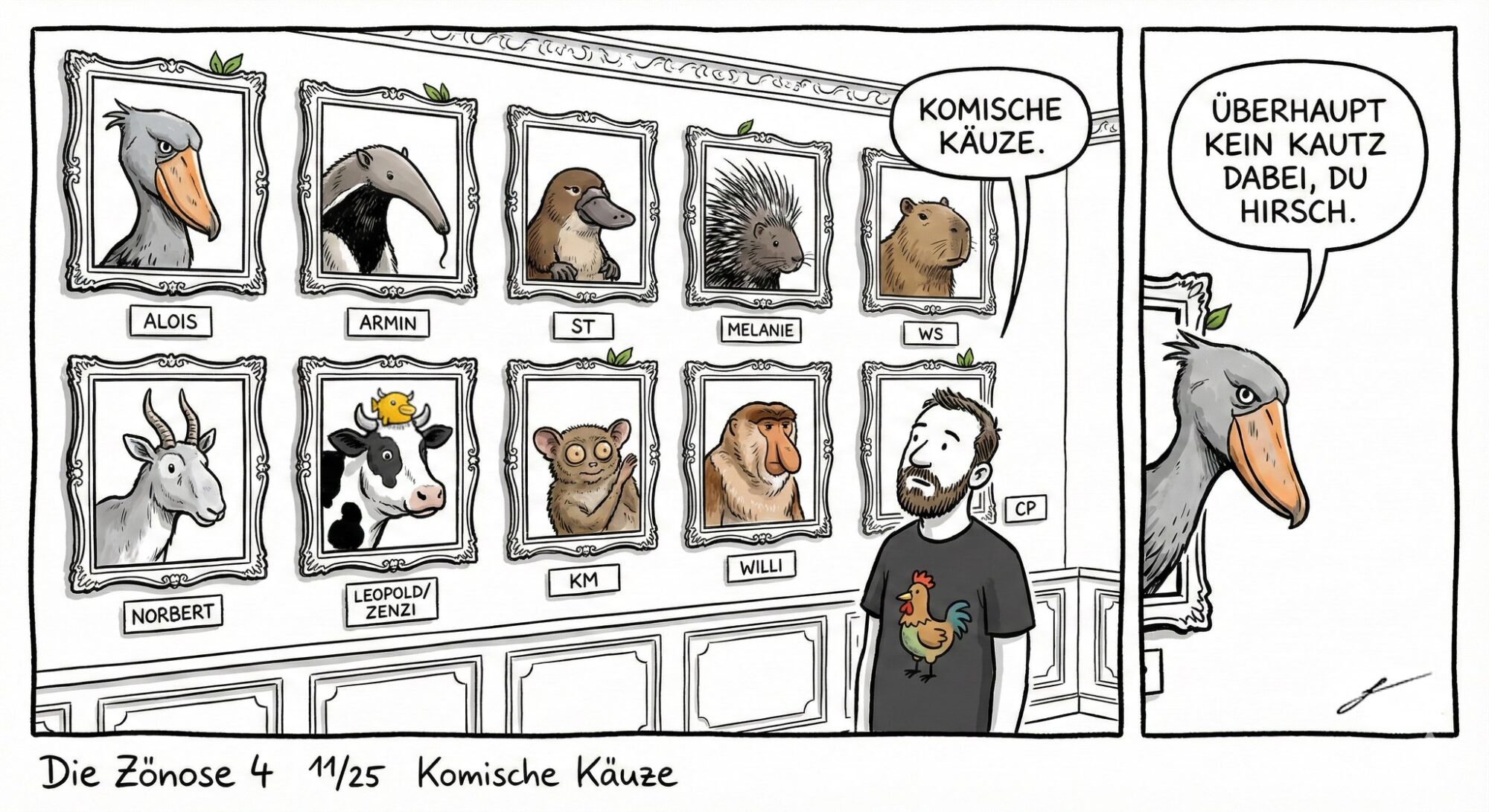 Seit Jahren will ich Comics zeichnen. Doch nie habe ich es über ein unkenntliches Krixikraxi hinaus geschafft. Dank KI und ein wenig Bildbearbeitung wird die Zönose 2025 Wirklichkeit.